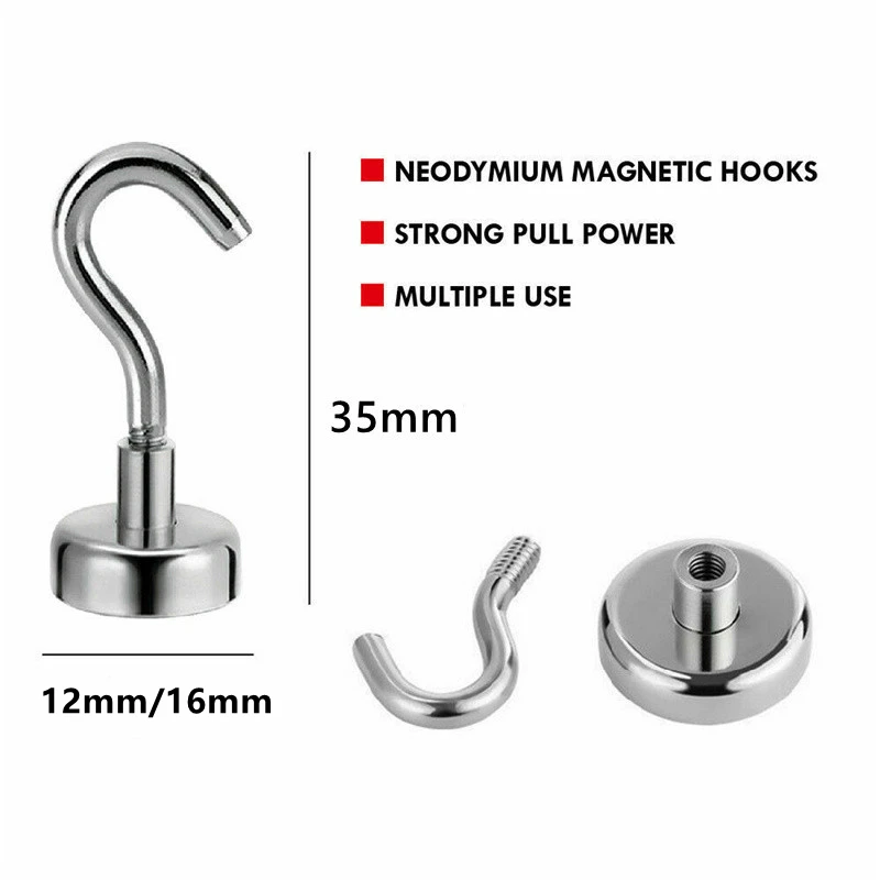 Магнитный крючок D12/D16 мм, прочные Постоянные неодимовые магниты, крючки, сверхпрочный настенный кронштейн, подвесная вешалка для ключей, пальто, чашек