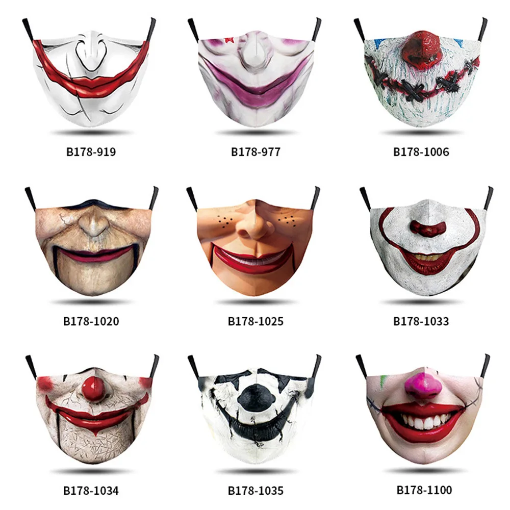 Маски для лица на Хэллоуин с ужасным принтом гримаса для мужчин жен...