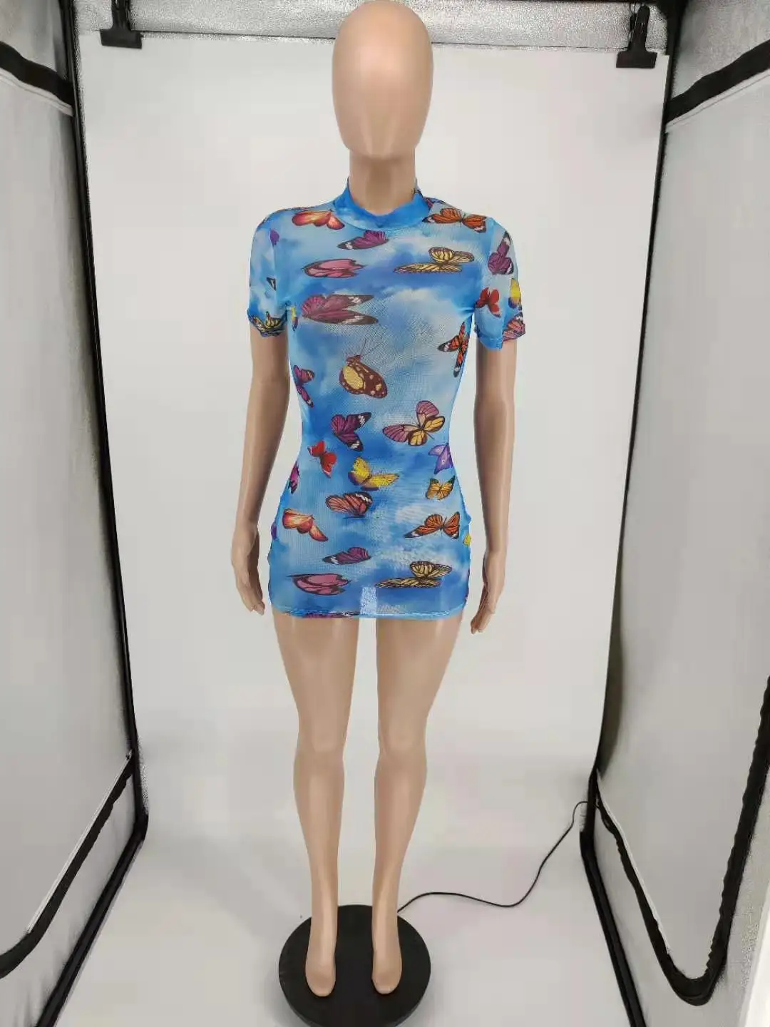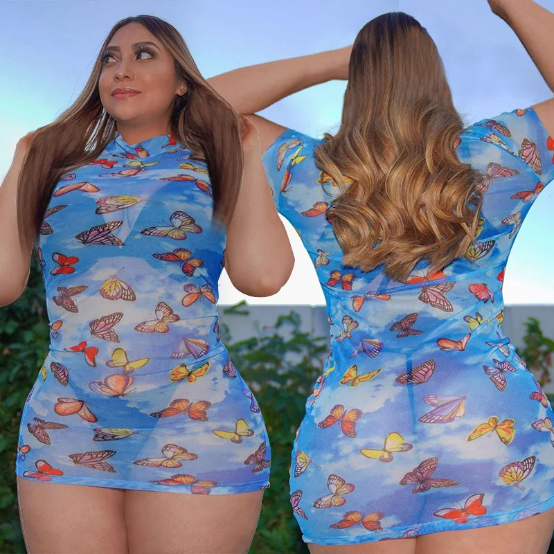 Сексуальное Платье С Рисунком бабочки, женское Сетчатое прозрачное Короткое мини-платье размера XL 5XL для ночных клубов вечерние, туники, элегантное платье