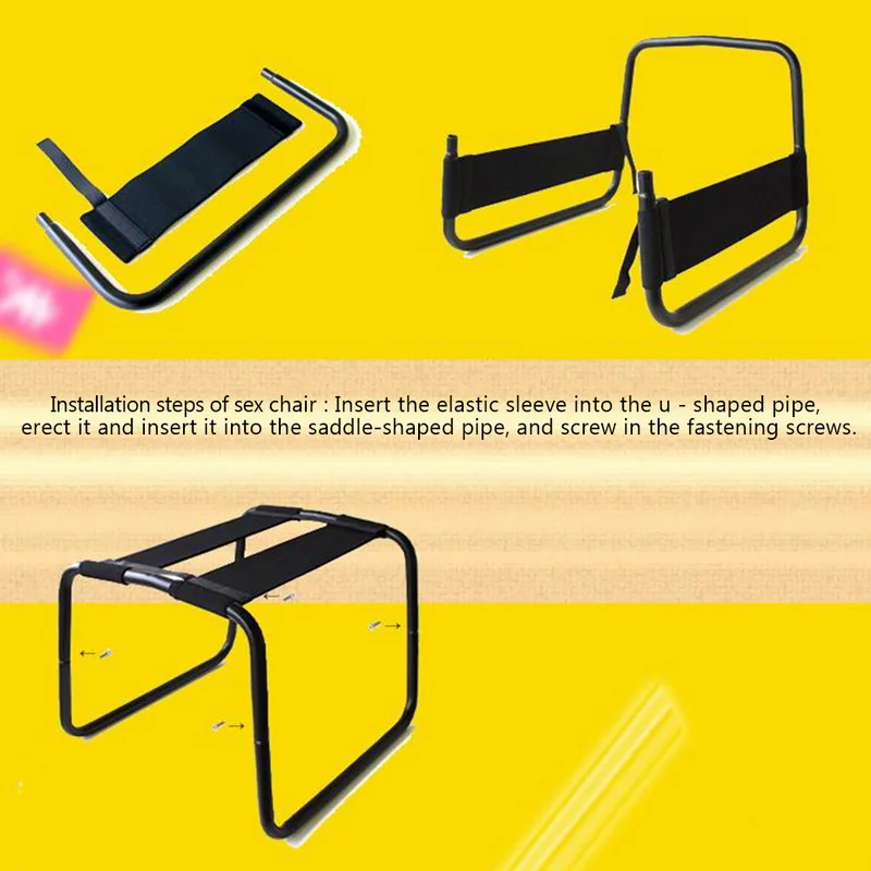 Секс-стул предназначен для жесткой игры и изготовлен с тяжелой трубчатой стальной рамой.