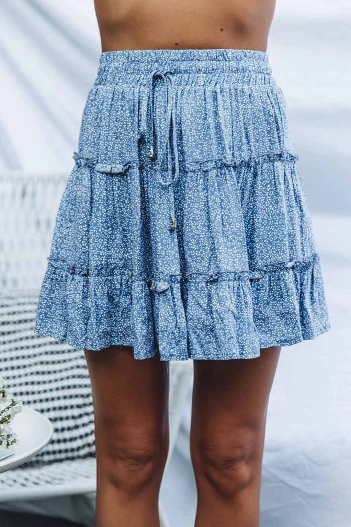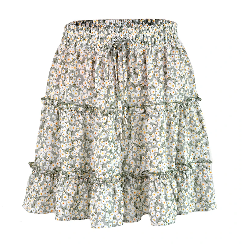 Юбка женская плиссированная с цветочным принтом, пикантная пляжная короткая юбка с оборками, с завышенной талией, в богемном стиле, большие размеры, на лето