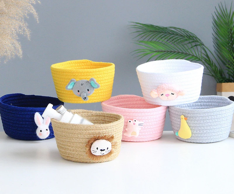 Мультяшные животные ручной плетеная корзина для хранения детские игрушки Настольный органайзер для мелочей милый Лев утка коробка для хранения белья корзины 16*9 см