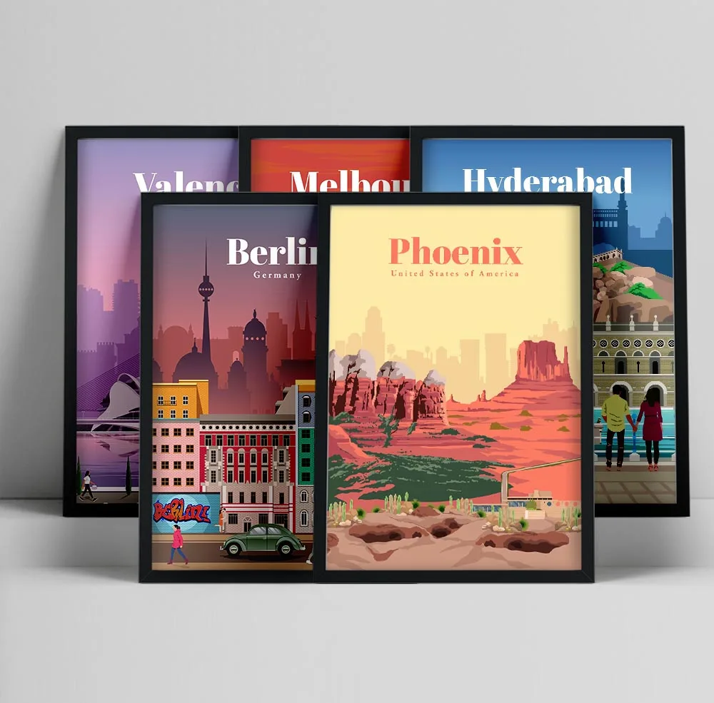 Винтажный Ландшафтный постер с изображением Берлина, Валенсии, Мель...
