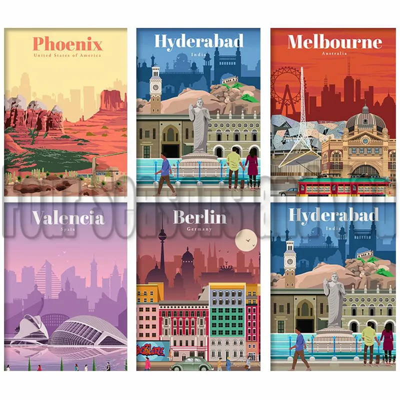 5D алмазная живопись сделай сам, Берлин, Валенсия, Мельбурн, пейзаж мира, полная Алмазная мозаика, Набор для вышивки крестиком, мозаика, украшение для дома