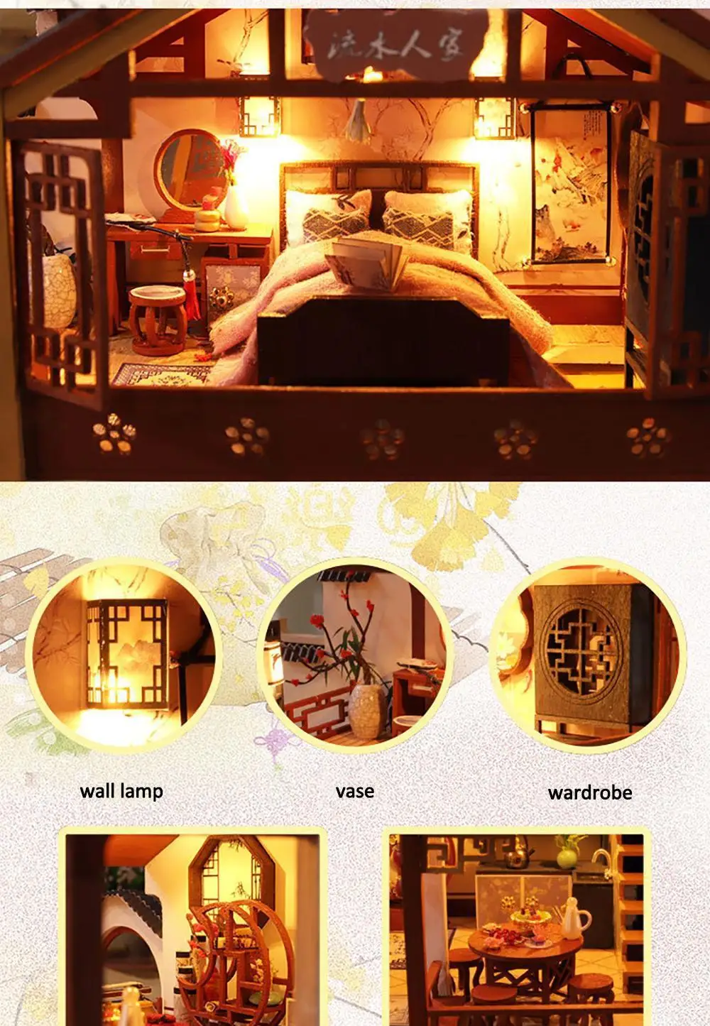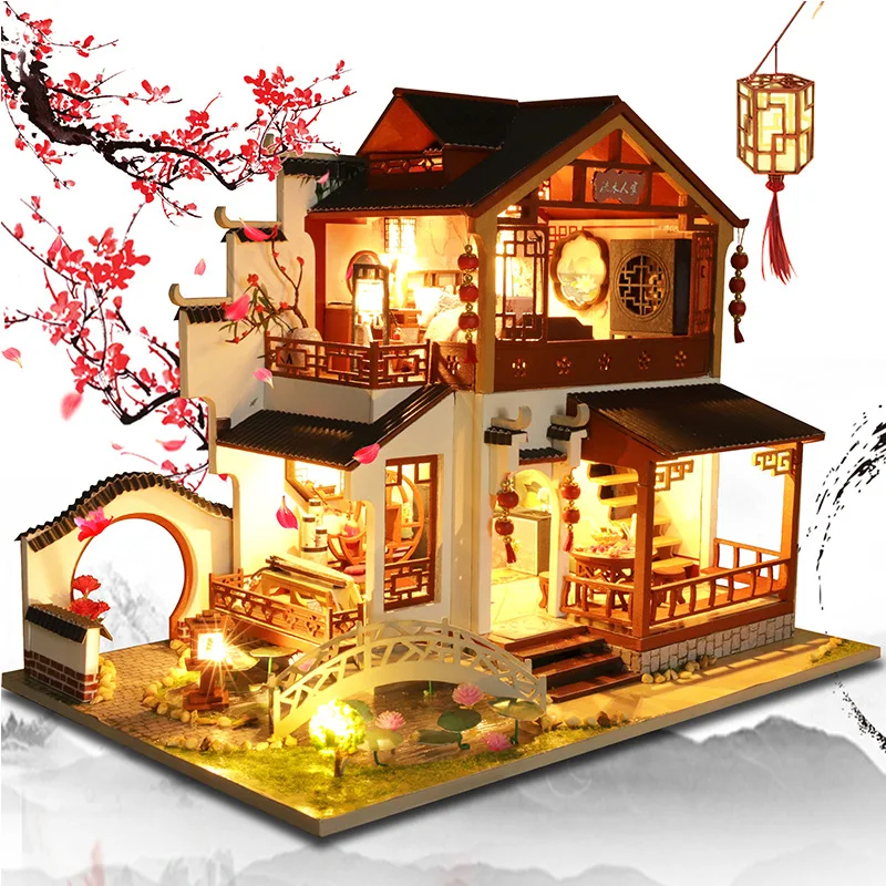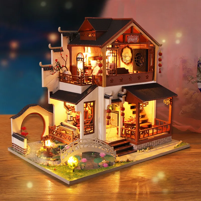 Набор деревянных миниатюрных кукольных домиков «сделай сам», Сборная модель китайского здания, игрушечный дом, подарок для детей на день рождения, мебель, кукольный дом для взрослых