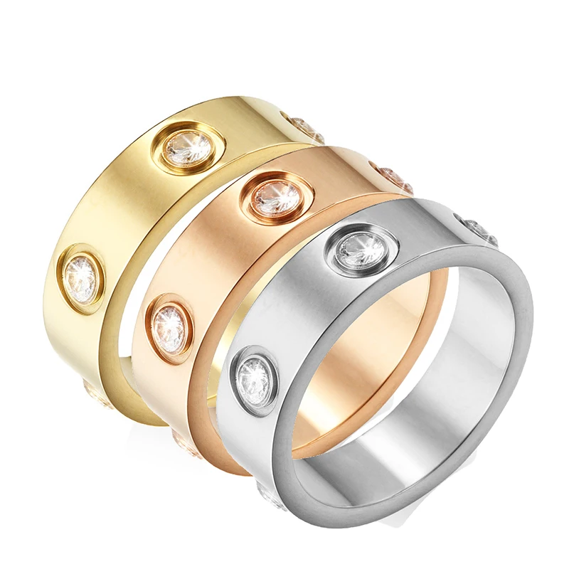 Роскошное блестящее гладкое кольцо SHOUMAN с 3 кристаллами и 3 крестиками с ЧПУ кольцо из нержавеющей стали розовое золото для женщин обручальные подарки брендовые ювелирные изделия