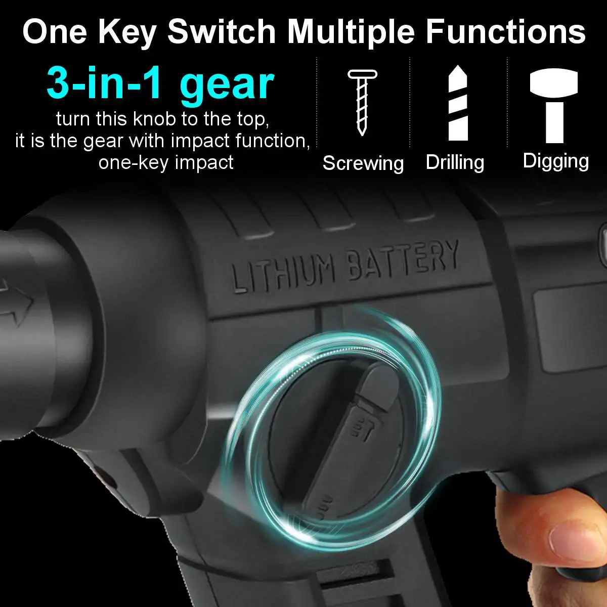 -Машинка находится в сочетании с функциями электрического молотка и электродрели. Поверните переключатель для преобразования функций.