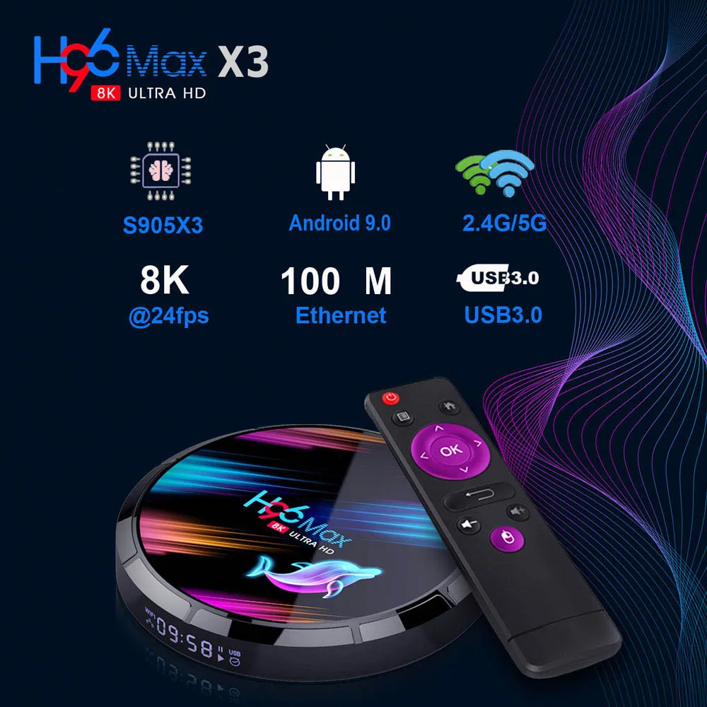 ТВ-приставка H96 MAX X3, 4 + 128 ГБ, 8K, Amlogic S905X3, Android 9,0, Wi-Fi, 1080P, 4K
