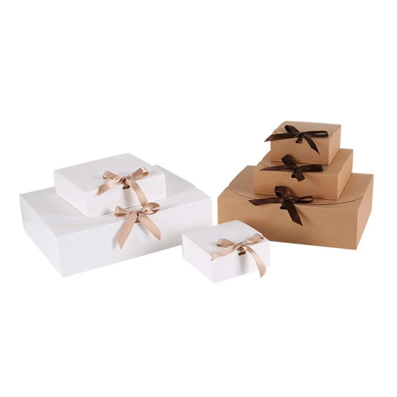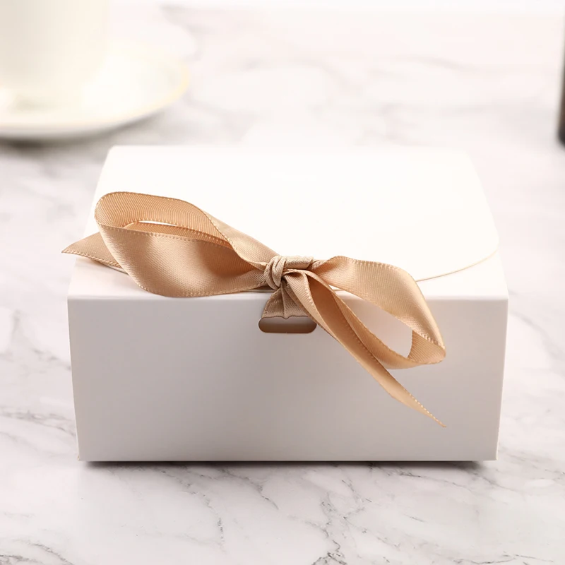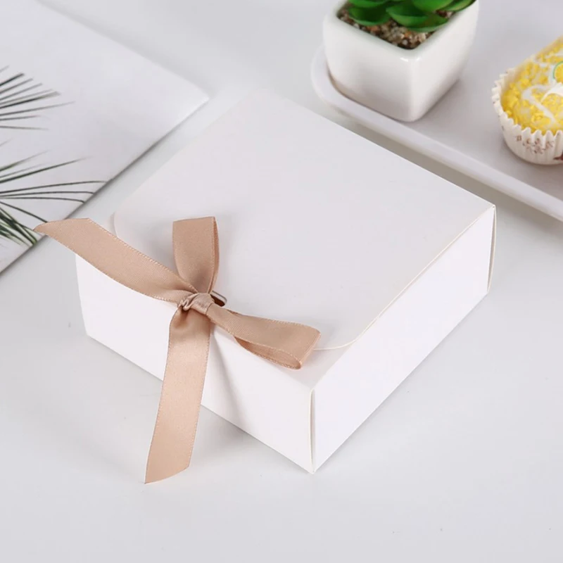 Квадратная коробка из крафтовой бумаги, 1 шт., подарочные коробки для хранения конфет на День Св. Валентина с лентами, мешочки для подарков на день рождения, коробки для кексов