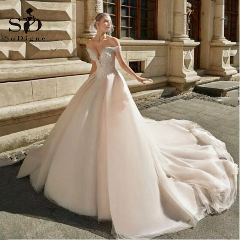 Атласное Бальное Платье soworthy, простое кружевное свадебное плать...