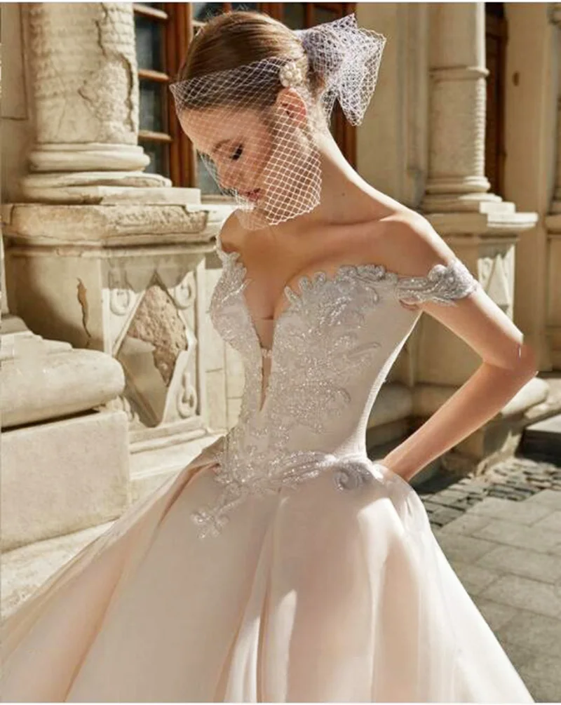Платье свадебное кружевное с открытыми плечами и открытой спиной