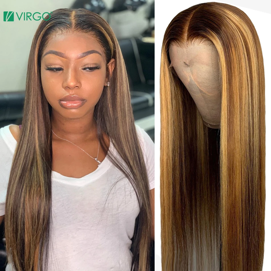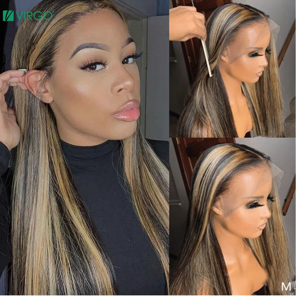 Парики из натуральных волос, прямые, цвета дюймов, с подсветкой, с эффектом деграде, медовый блонд, для чернокожих женщин