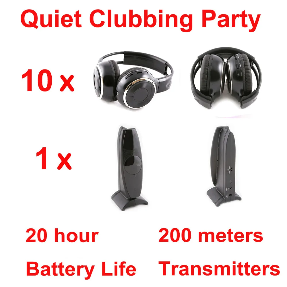 Наушники Сайлент диско гарнитура системы черный складной беспроводные наушники-тихий Клубные вечерние посылка (10 + 1 передатчик)