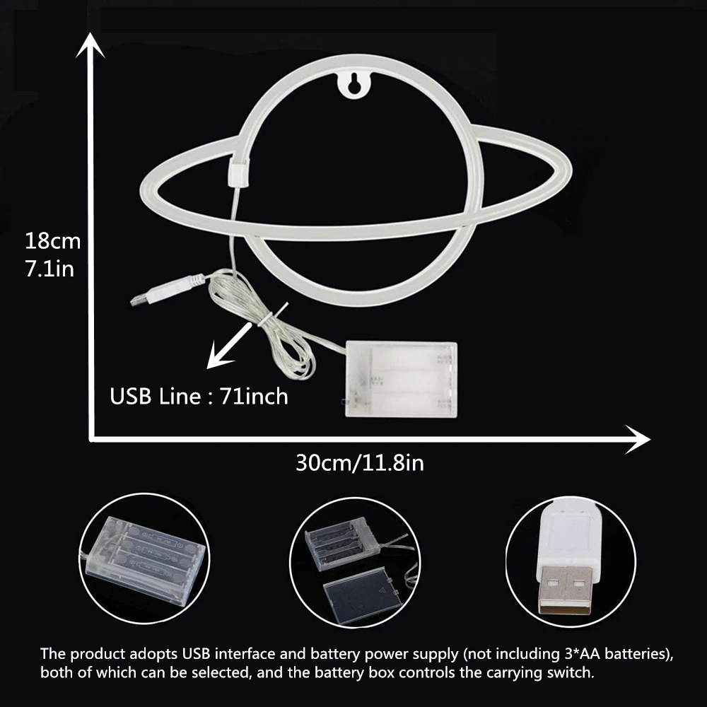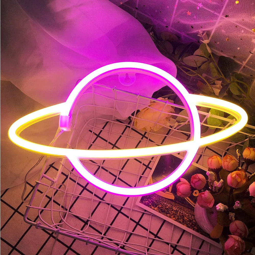 Светодиодный неоновый светильник в форме планеты, неоновый свет на батарейках, домашний декоративный светильник, светильник шение для вечеринки и комнаты