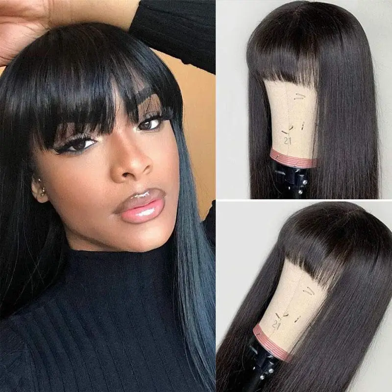 Парики из человеческих волос с челкой, дешевые парики из бразильски...