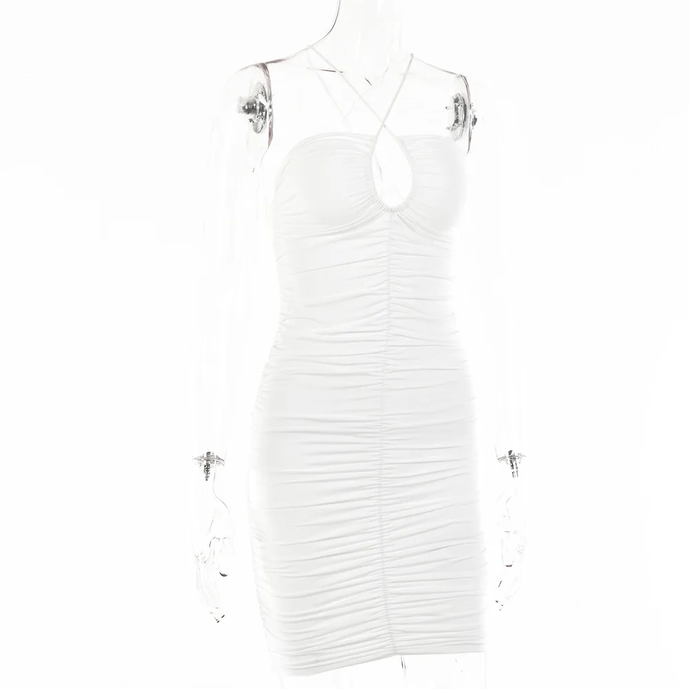 Белое Сетчатое Плиссированное облегающее пикантное платье Avrilyaan, женские вечерние платья с лямкой на шее и открытой спиной для ночного клуба, Элегантное летнее мини-платье, платье