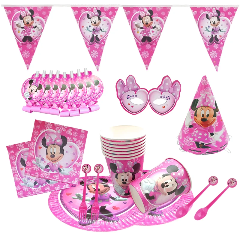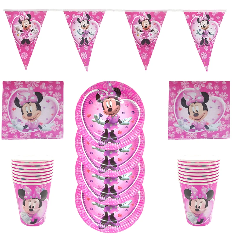 Тема Минни Мауса, одноразовая посуда, искусственная скатерть, день рождения, вечеринка для девочек, аксессуары