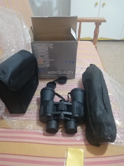 заказывал бинокль со штативом и телефонодержателем. Все пришло в комплекте, только упаковка самого бинокля была помята из- за чего, видимо, отклеился левый окуляр для глаза, но продавец в этом не виноват, виноват перевозчик. Я аккуратно вклеил окуляр на место и проблема решилась.