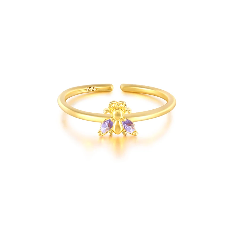 Кольцо женское открытое из серебра 925 пробы, с Пчелой