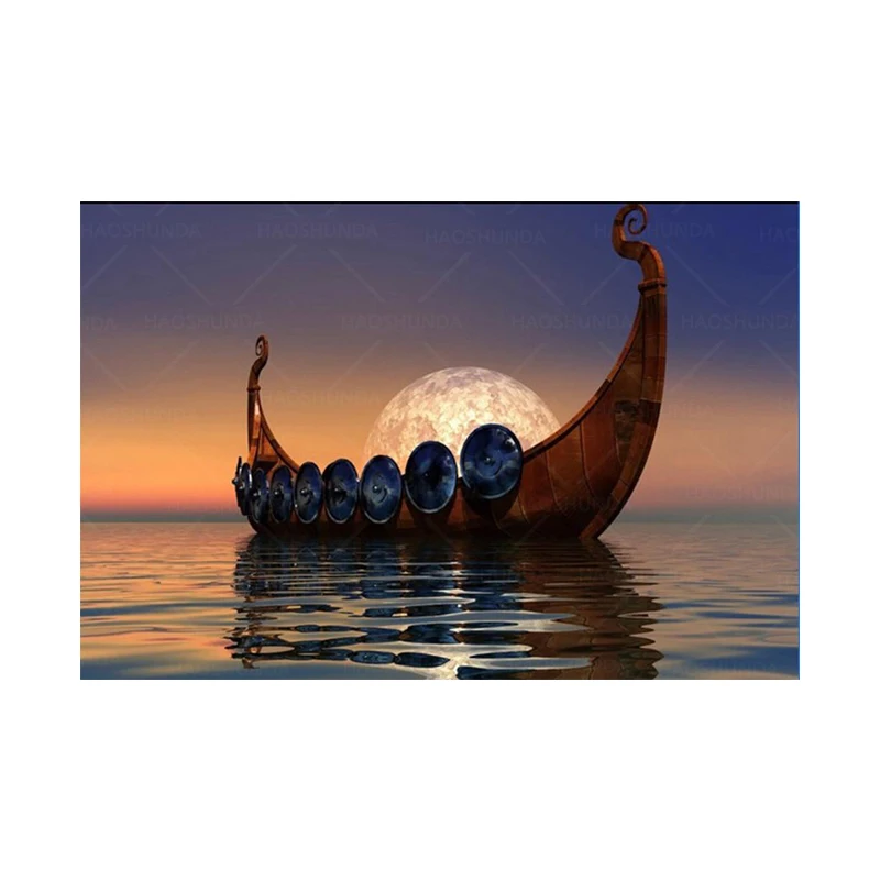 Тканевый постер с рисунком на заказ (рамка в наличии) Корабль Викингов для декора стен, декор для комнаты, украшение для дома