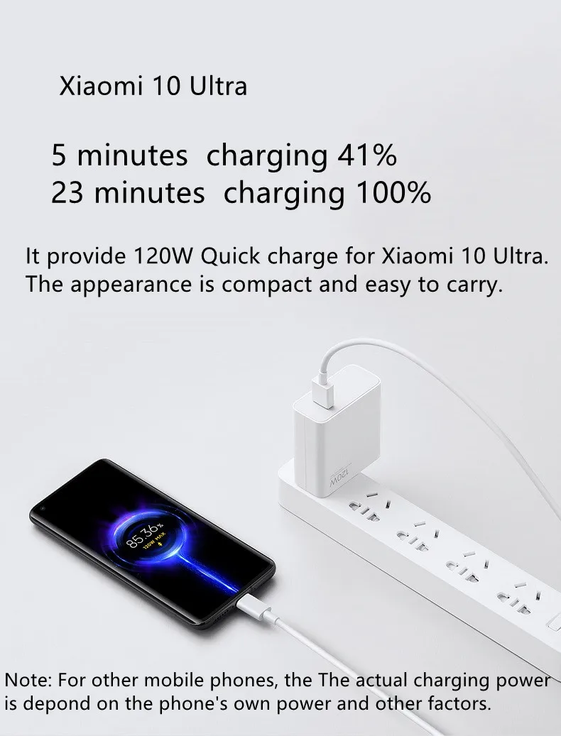 Оригинальное зарядное устройство Xiaomi Quick Charge 120 Вт, новая технология быстрой зарядки с кабелем Type-C для смартфонов Xiaomi 10 Ultra, ноутбуков