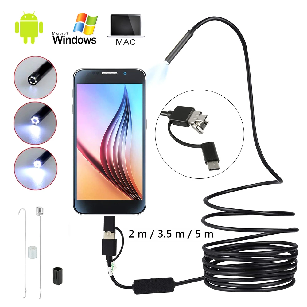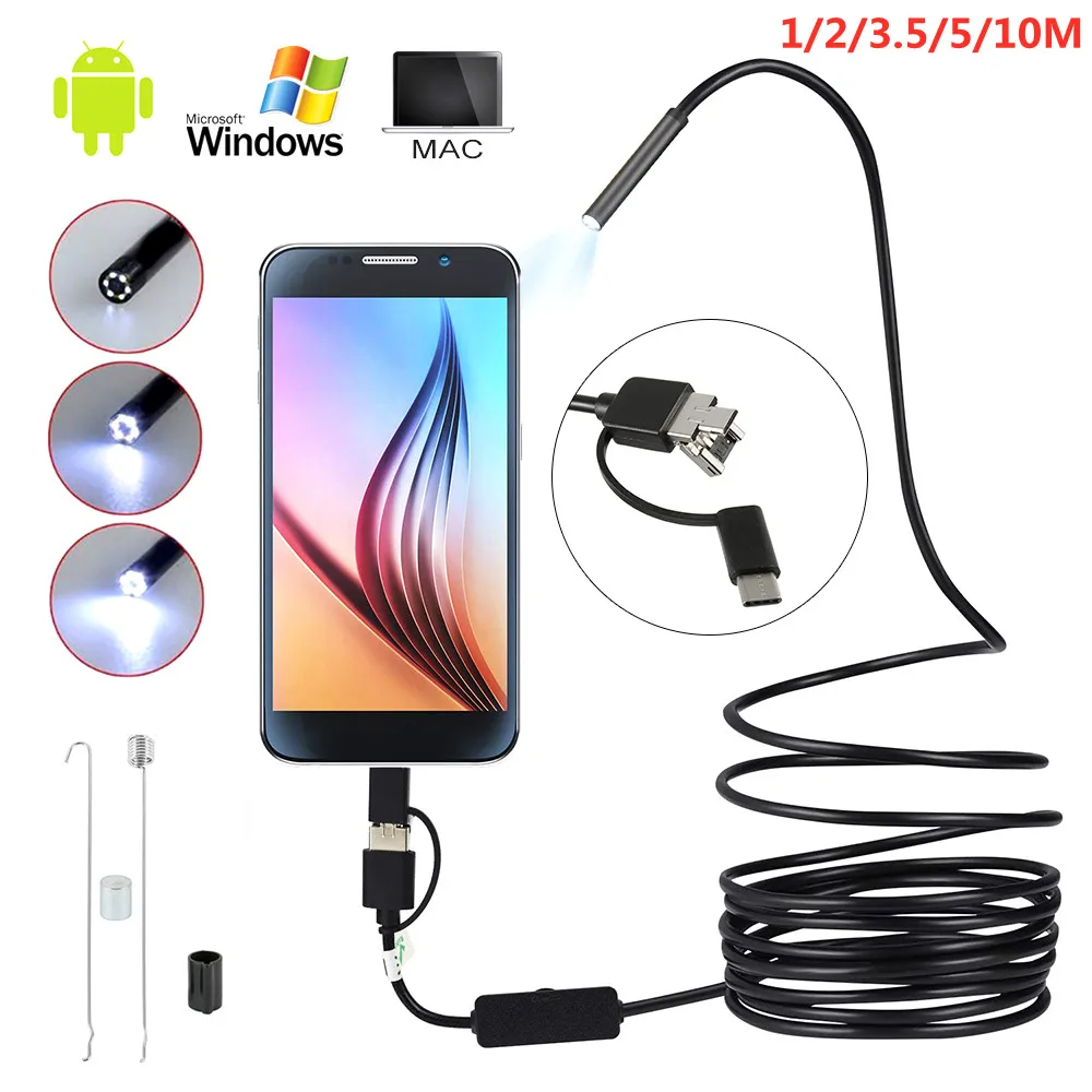 Эндоскоп 3 в 1, водонепроницаемый, 5,5 мм, 6 светодиодов, Тип C, 1 ...