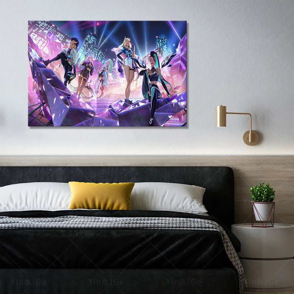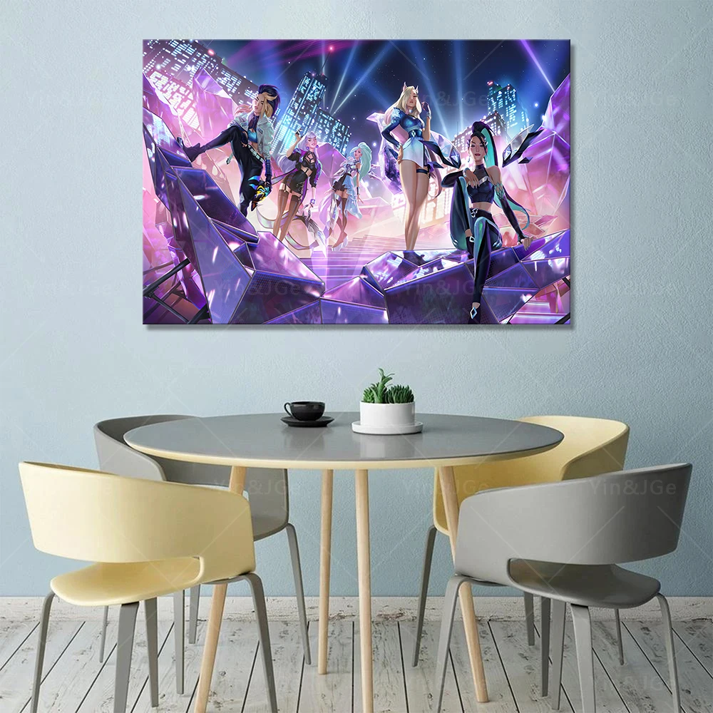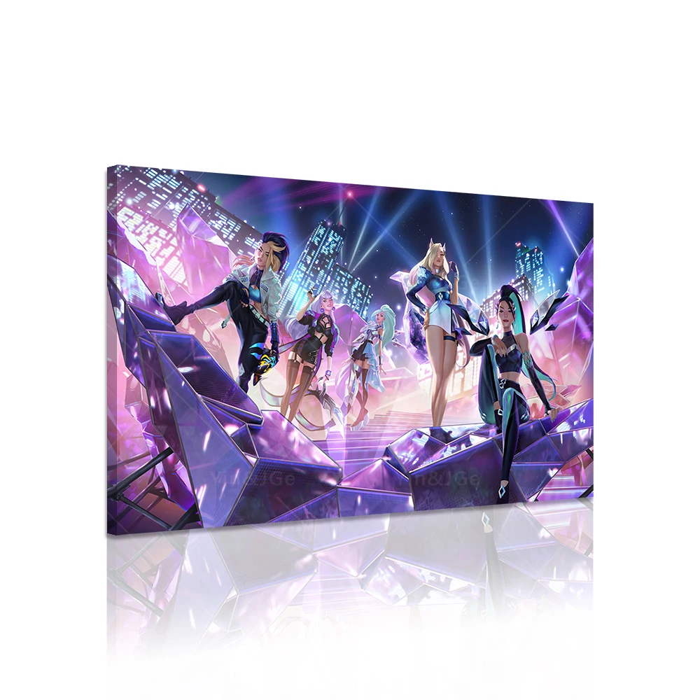 Модульная картина KDA All Out Akali Evelynn Seraphine Ahri, Картина на холсте, Настенная картина, плакат для дома, для гостиной, декоративная рамка
