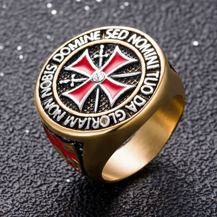 Мужское кольцо из нержавеющей стали крестоносца, инкрустированное Красным Крестом, кубическим цирконием, властные рыцари, кольцо тамплиера ювелирные изделия, 2020