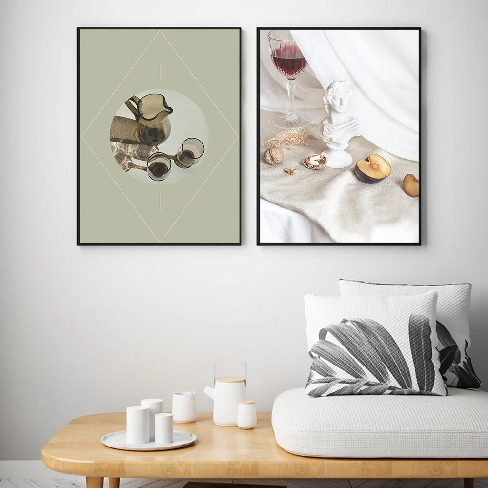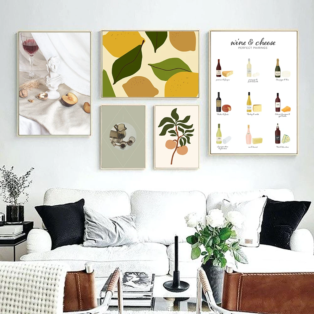 Картина на холсте с изображением лимона, апельсина, зеленого листа, декор для кухни, винный сыр, настенные художественные картины, Современное украшение для дома, натюрморт