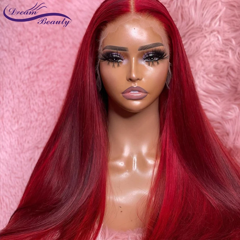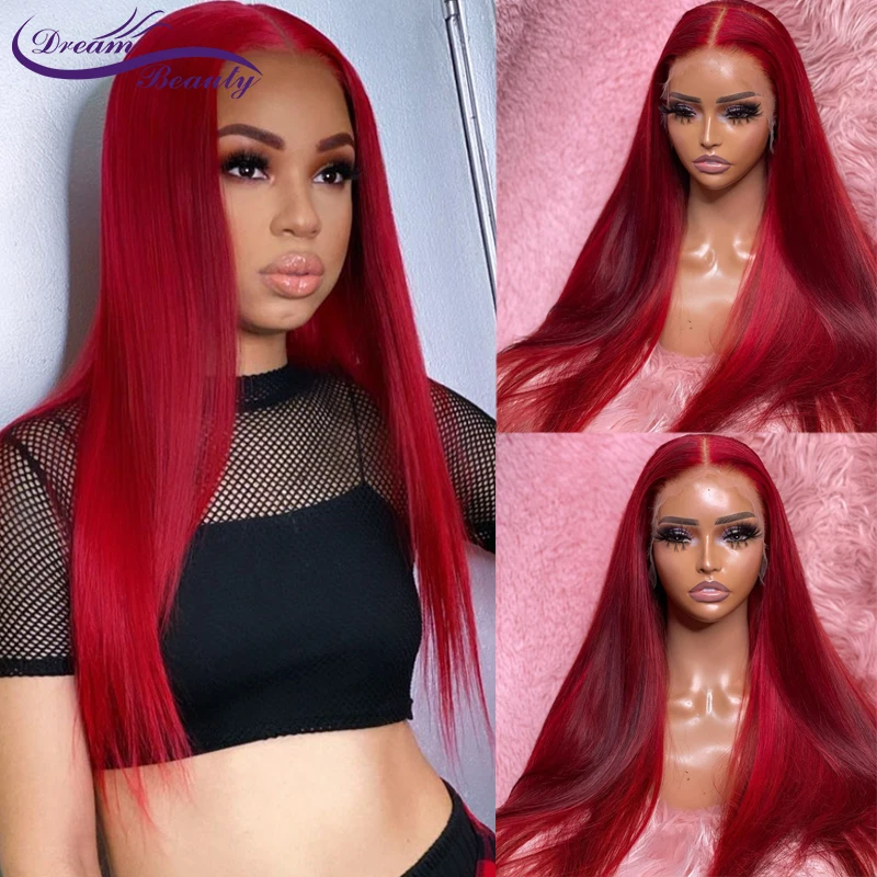 Парик из натуральных волос, красный, бордовый, 13X4, бразильский, с застежкой Реми 4x4, прямой, с сетчатой фронтальной линией, для женщин, Dream Beauty
