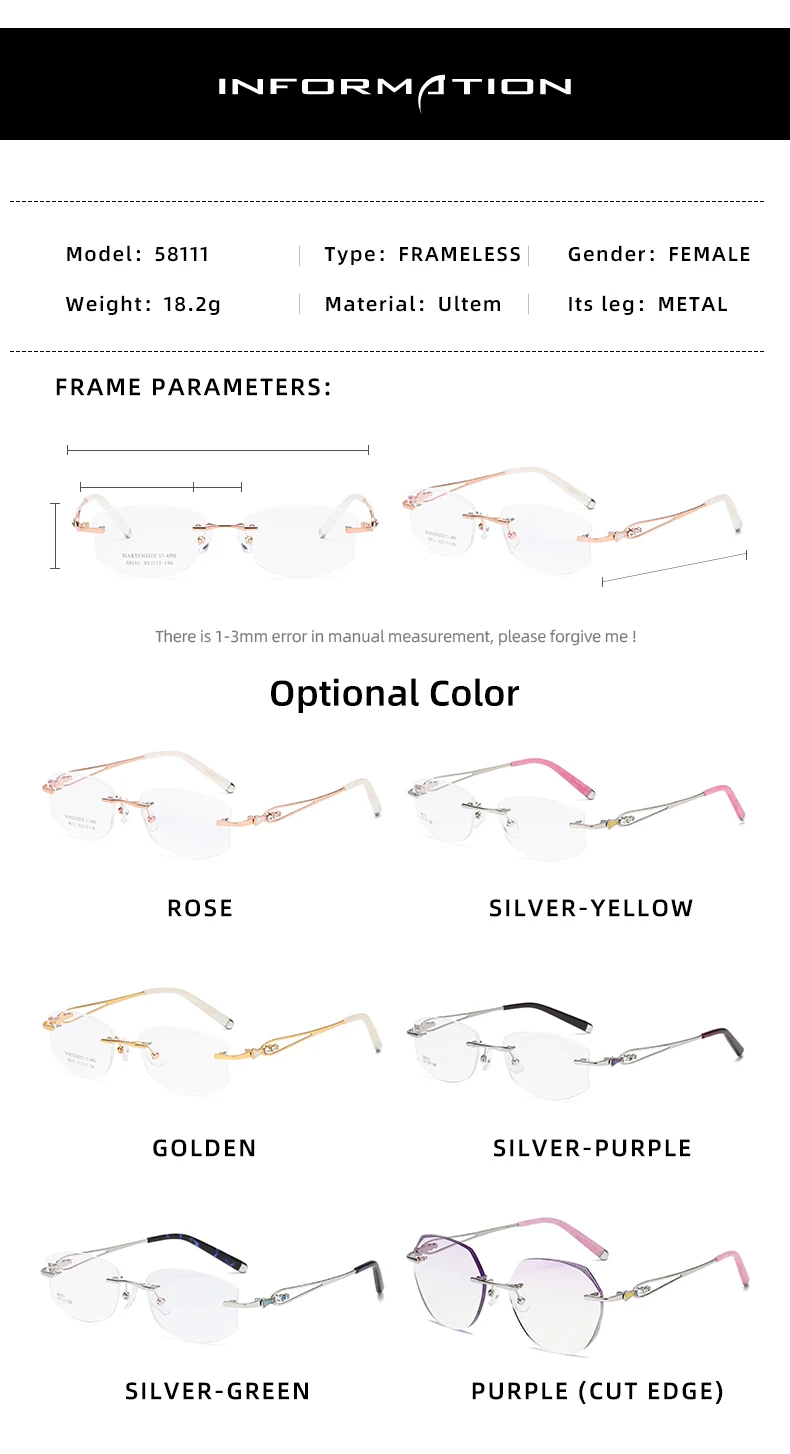 Оправа для очков ZIROSAT, титановая оправа для чтения, без оправы, с Тонировкой из сплава 58111