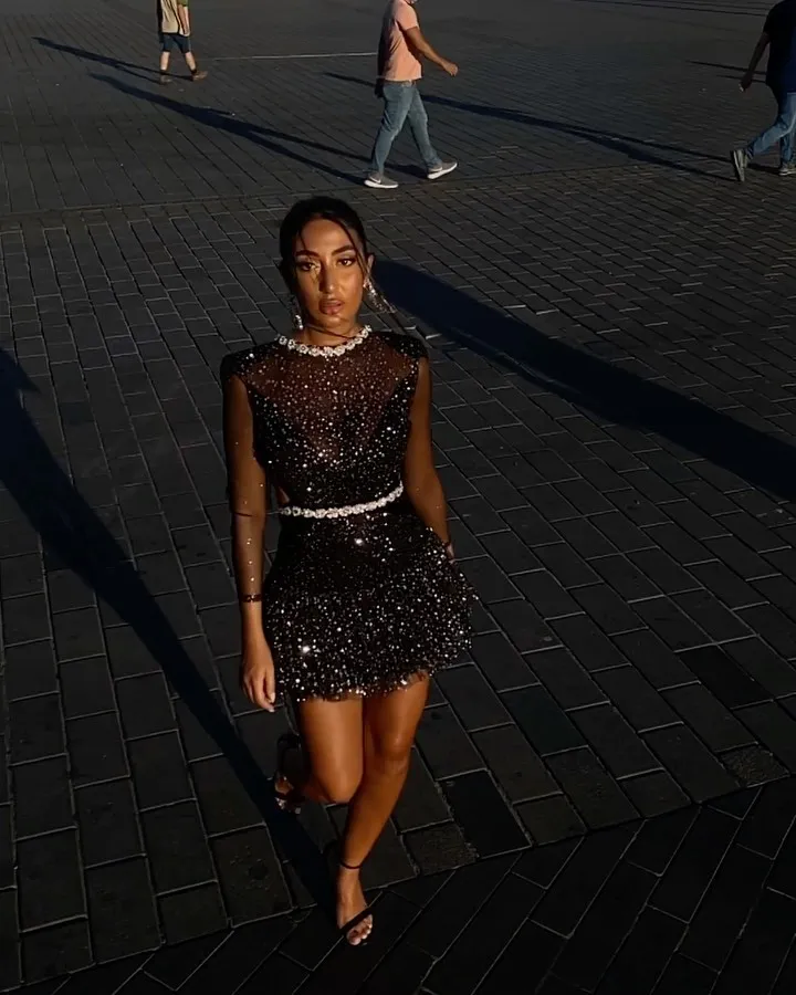 Маленькое черное платье для выпускного Расшитое бисером блестками вечернее платье круглый вырез с длинным рукавом вечернее платье коктейльное платье