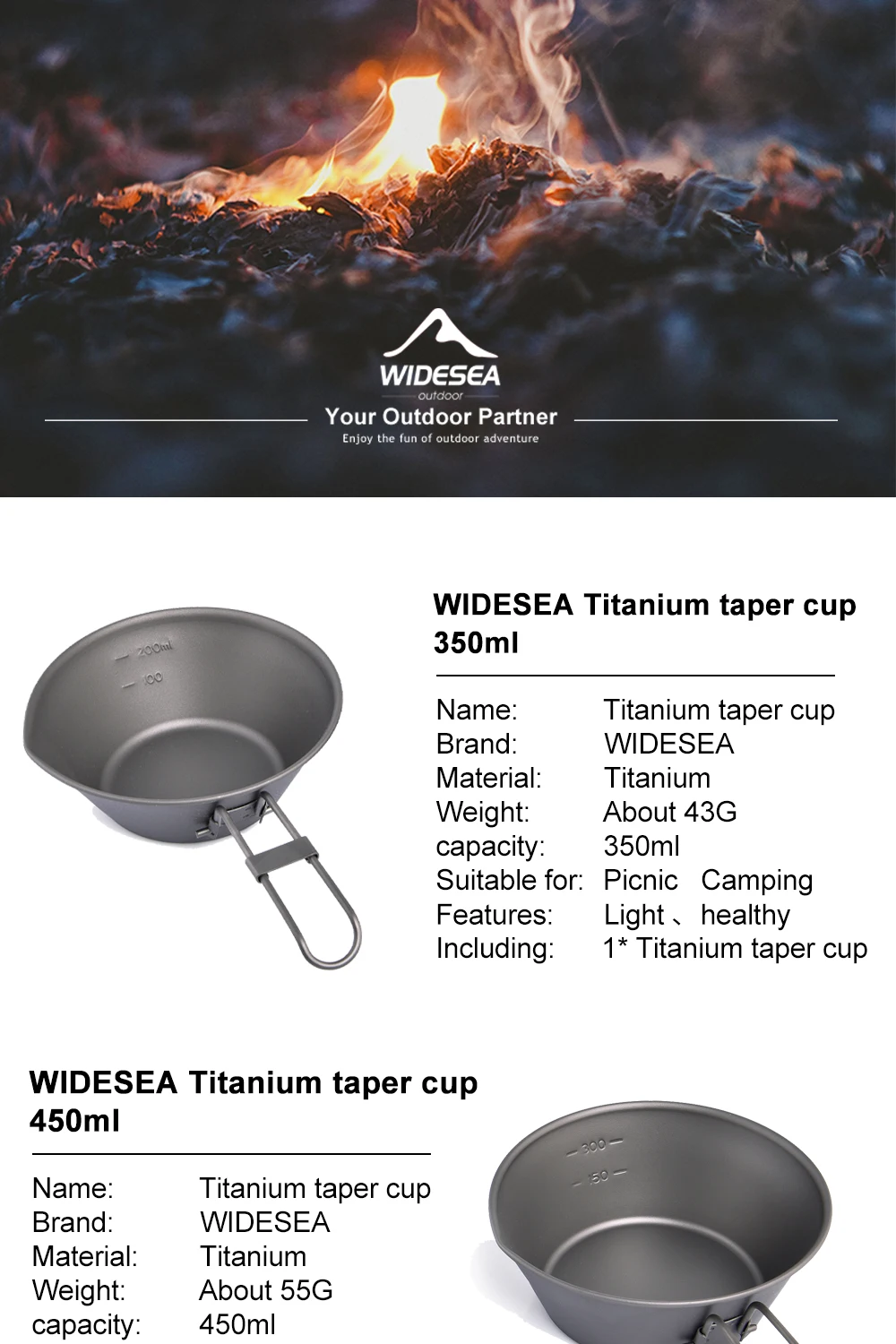Походная миска Widesea из титана, посуда, складная ручка, чашка для туризма, походов, пикника, 2 шт.