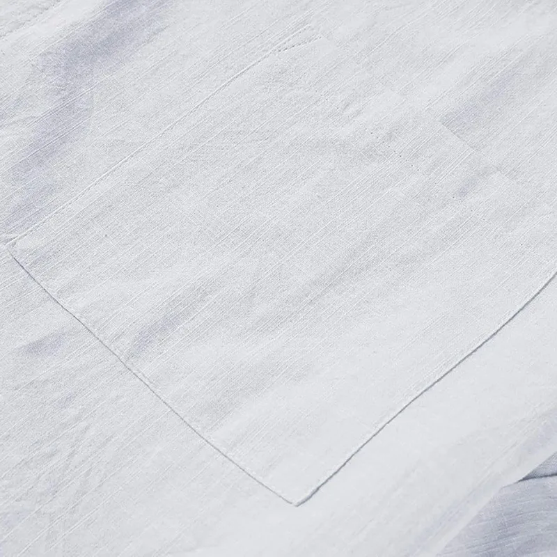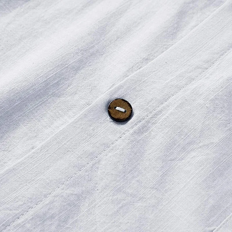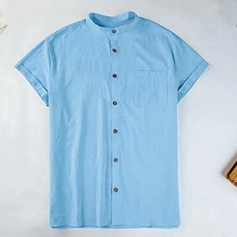 Рубашка Мужская льняная с коротким рукавом, свободная Повседневная блуза из чистого хлопка и льна, на пуговицах, однотонная Удобная футболка для отдыха, лето