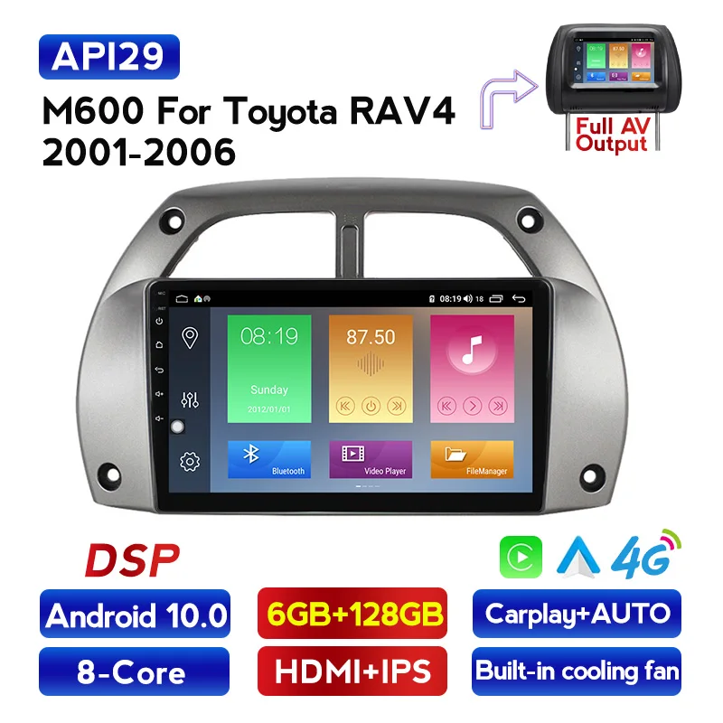 Автомобильный радиоприемник IPS + HDMI Blutooth для Toyota RAV4, мультимедийный видеоплеер, навигация GPS, Android 10, 2DIN, годы выпуска 2001, 2002, 2003 - 2006