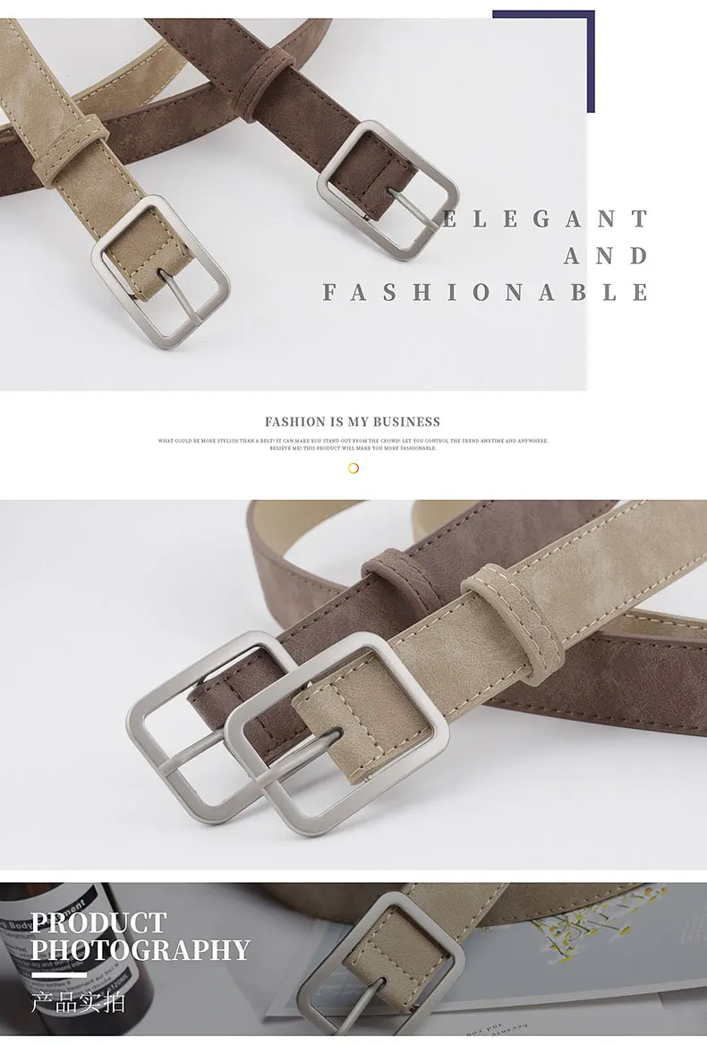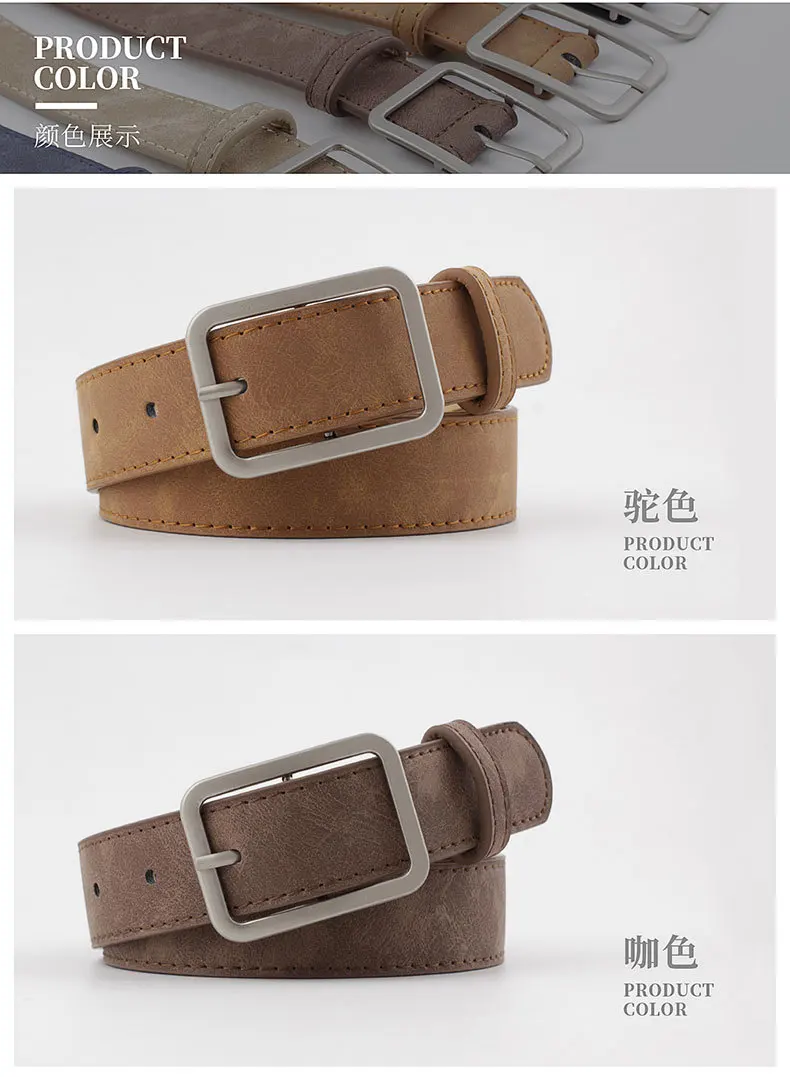 Ремень женский кожаный с квадратной металлической пряжкой, 2,8 см