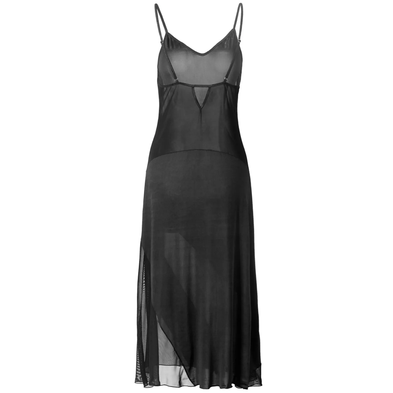 Пикантная обувь для ночного платье Для женщин кружевное нижнее белье, чашечки расположены рядом, сращивания ночная рубашка с v-образным вырезом шеи ремень сексуальная ночная рубашка, одежда для сна, прозрачная сетчатая одежда для сна черного цвета 6XL