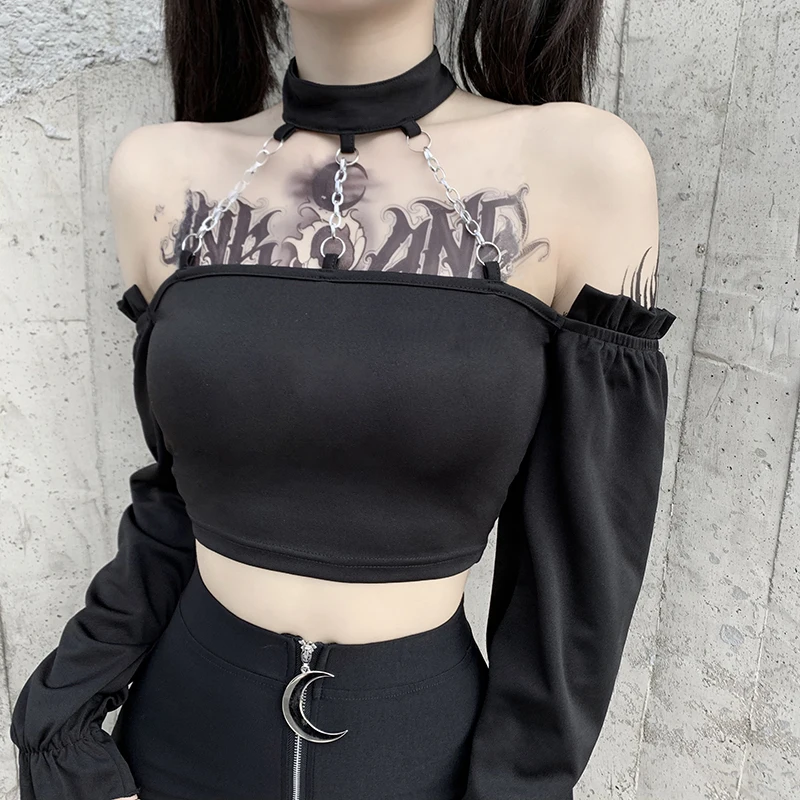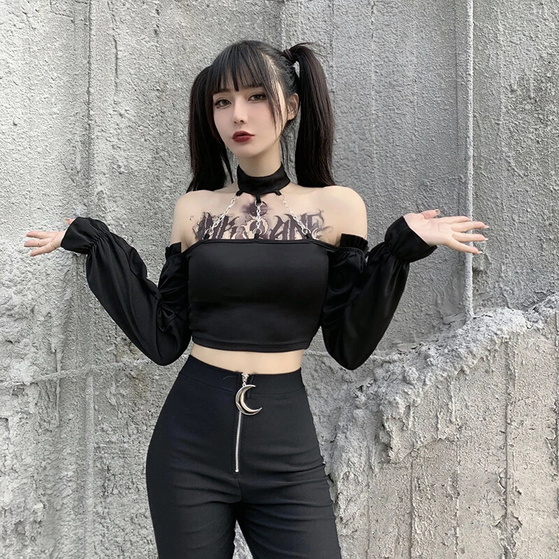 Женская футболка с открытыми плечами Goth Dark, готическая Сексуаль...