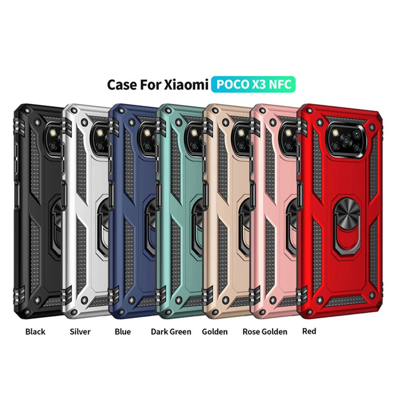 Чехол для Xiaomi Poco X3 Pro, противоударный армированный держатель-подставка, автомобильный чехол для телефона с кольцом для Mi Poco X3 NFC, Магнитная задняя крышка, мягкий чехол для телефона