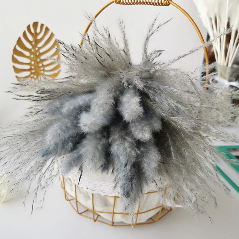Серая сухая пушистая тростника, маленькая пампасная трава, Декор, нефрагмиты для дома, свадьбы, свадебное украшение, оконный цветок