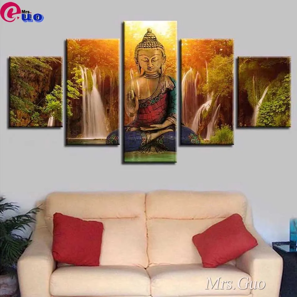 5 шт. 5D Сделай Сам алмазная живопись Вышивка водопад Будда пейзаж Полный Круглый квадратный мозаика Стразы домашний декор искусство,