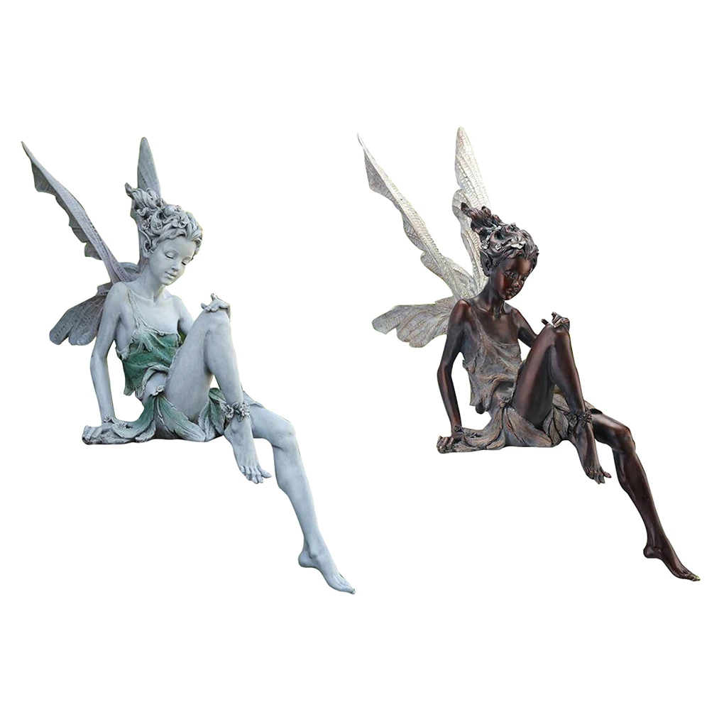 Статуэтка в виде цветов феи, статуэтка сидячего искусства, садовое украшение, крылья ангела, украшение из смолы для ландшафтного дизайна, украшение для дома и улицы