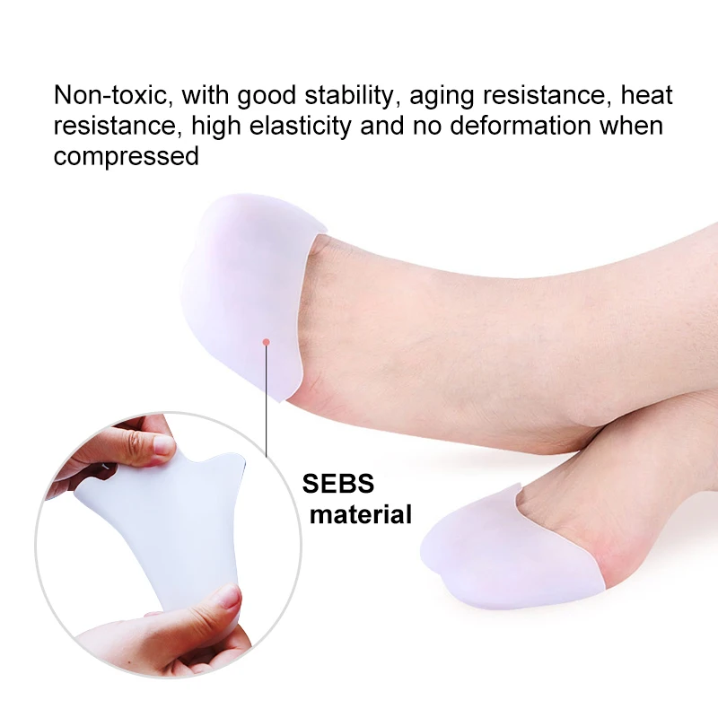 Название продукта: чехол для обувиМатериал:SEBS SIliconeНетто: 41 гХарактеристики продукта: растягивающийся материал SBES обладает термостойкостью, устойчивостью к старению, высокой эластичностью, высокой воздухопроницаемостью.Funtion:1. Снимает давление на переднюю часть стопы.2. Эффективно защищает пальцы ног.3. FФорма стопы и eЭффективно впитывает пот.