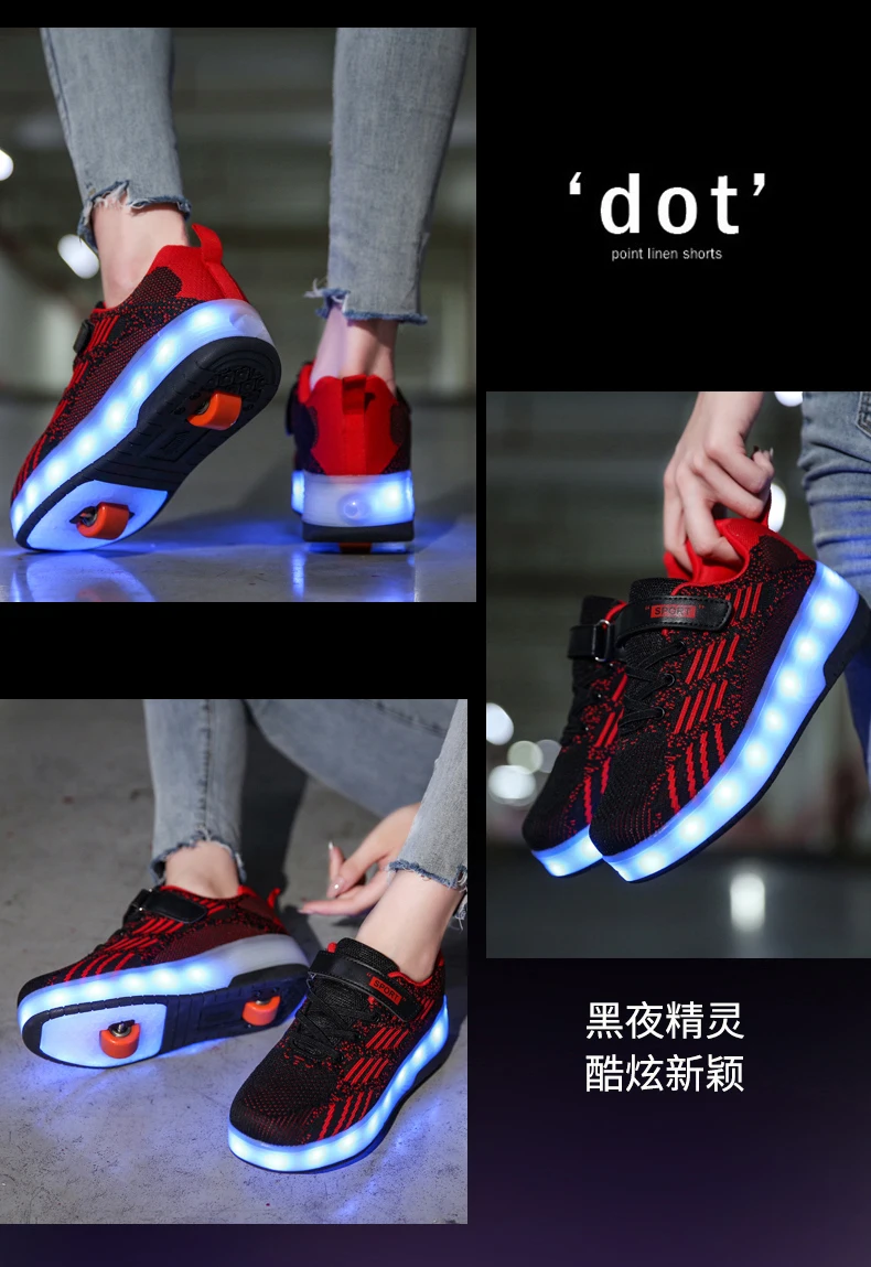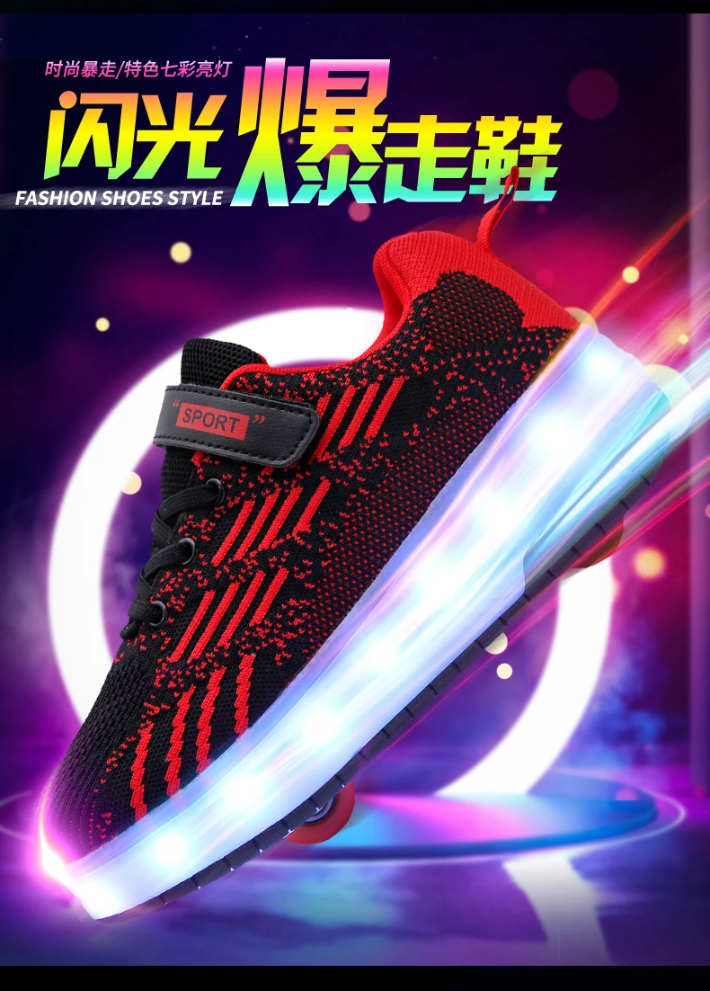 Светящиеся кроссовки на колесах, со светодиодсветодиодный подсветко...