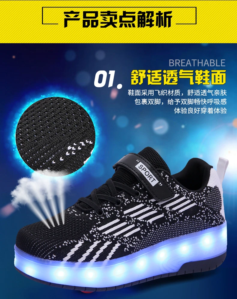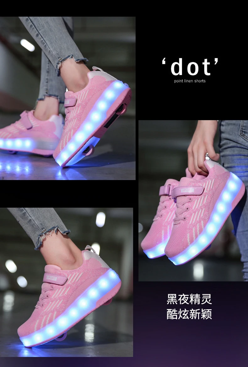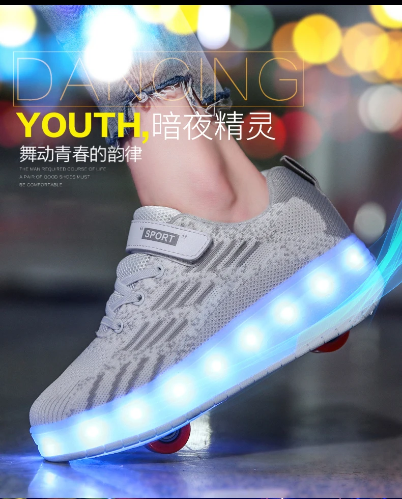 Детские кроссовки с колесиками, зарядка через USB, светодиодная подсветка, зарядка через USB