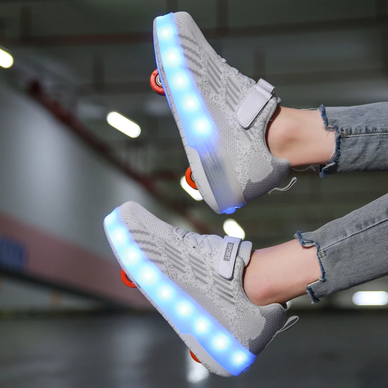 Светящиеся кроссовки на колесах, размер 28-40, USB зарядка, светящи...