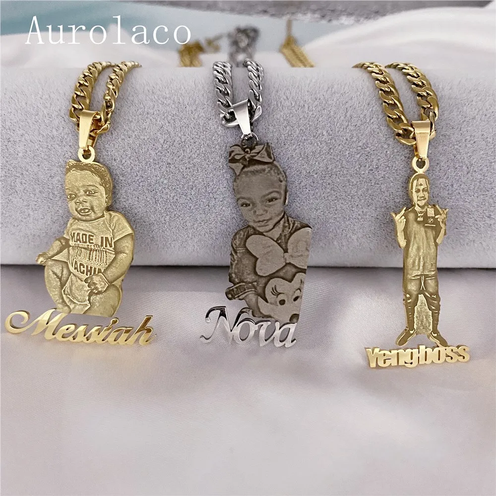 AurolaCo изготовленный на заказ ожерелье с фото именем кулон для Дл...