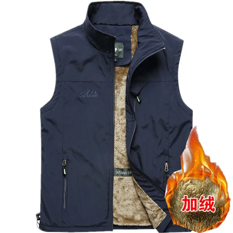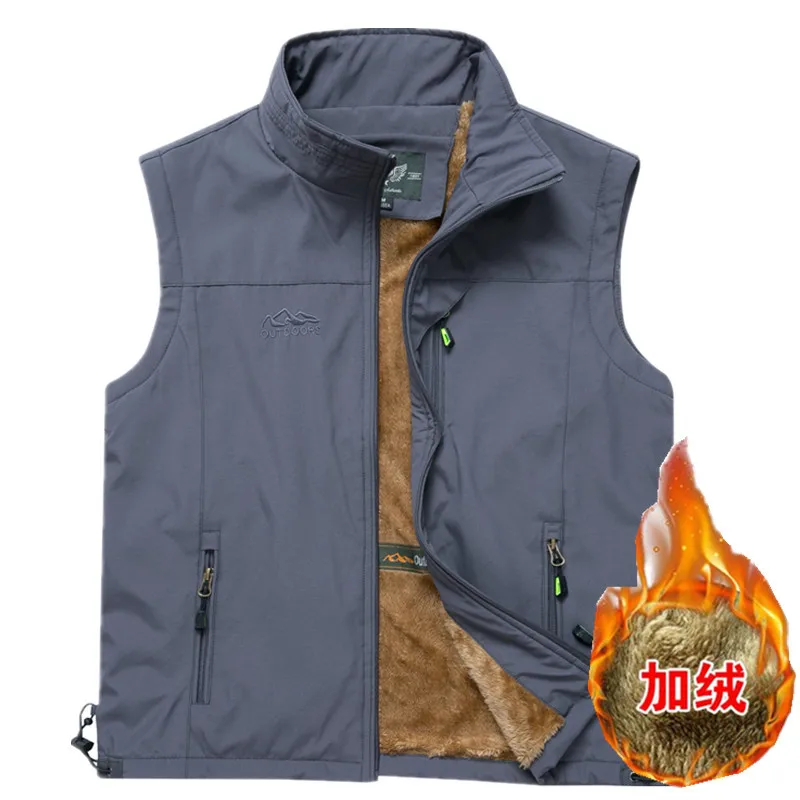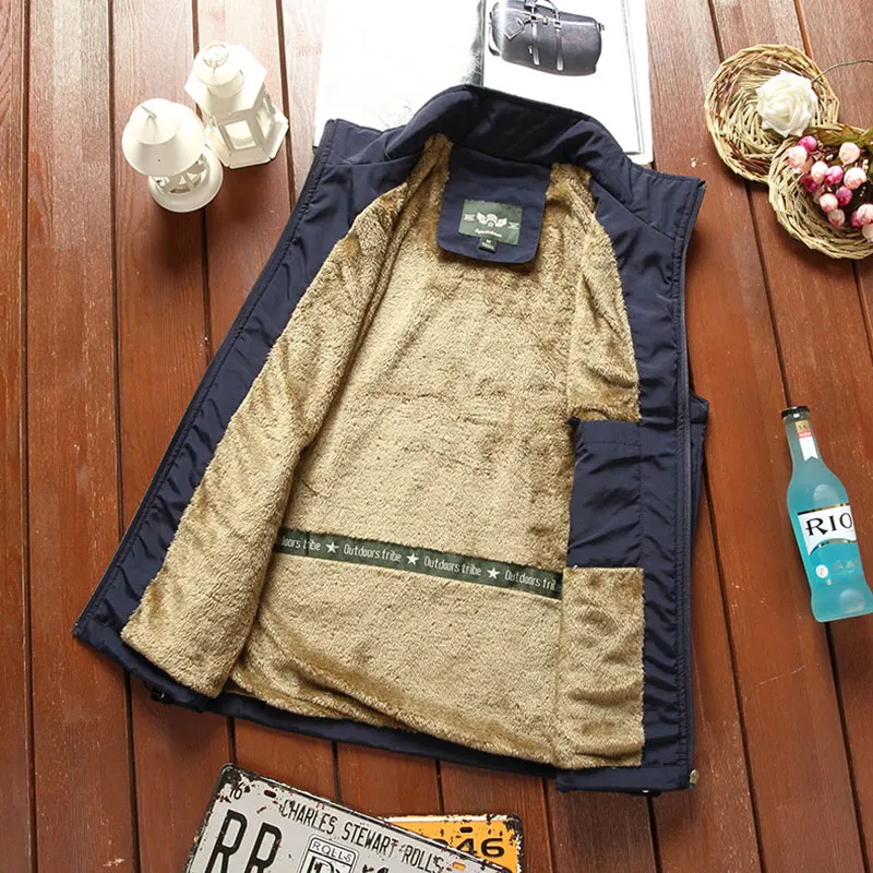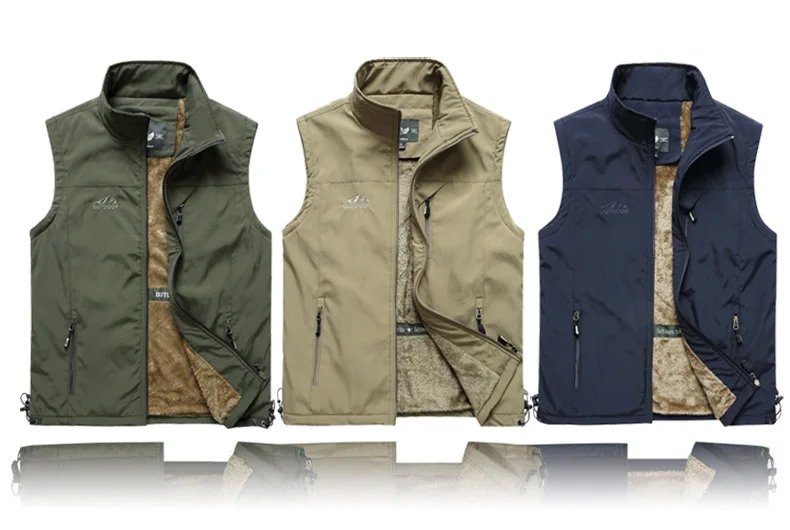 Зимняя одежда с ворсом жилет куртки Рыбалка для походов на открытом воздухе Альпинизм жилет многофункциональные карманы пальто без рукавов размера плюс L-6XL Homme