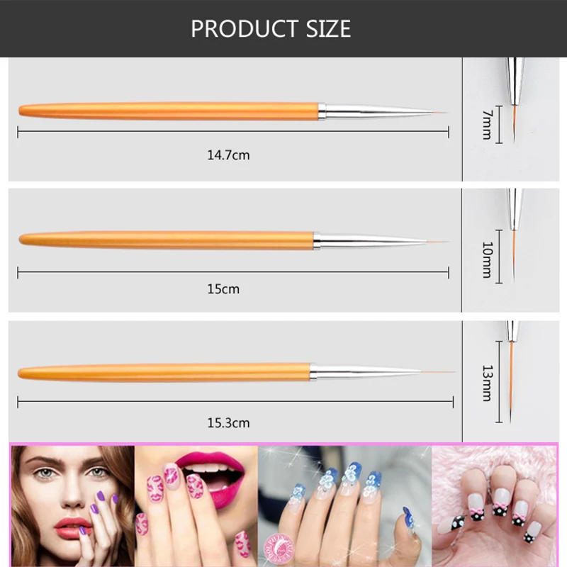 3 шт.компл. золотая ручка для дизайна ногтей Живопись из линий, профессиональная высококачественная ручка для УФ-гель-лака, набор инструментов для 3D-дизайна маникюра и рисования