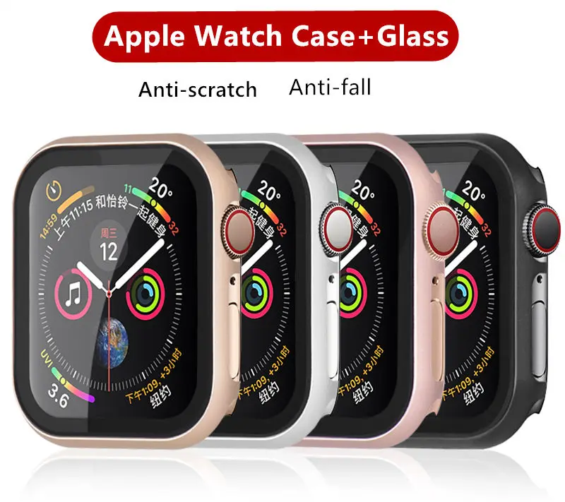 Стекло + чехол для Apple Watch Серия 6 5 4 3 SE 44 мм 40 мм, чехол для iWatch 42 мм 38 мм, бампер + Защитная крышка для экрана